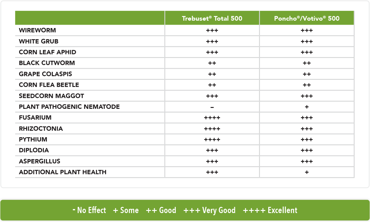 Champion Seed selects only the highest-yielding hybrids with the strongest agronomics. Then we protect them from early-season insects and diseases with the strongest rates of the most effective seed treatments. All Champion Seed corn is treated with the 500 rate of insecticide — double the industry standard rate — to give the most robust protection from yield-robbing pests. And our fungicide package uses multiple modes of action to handle any spring conditions.